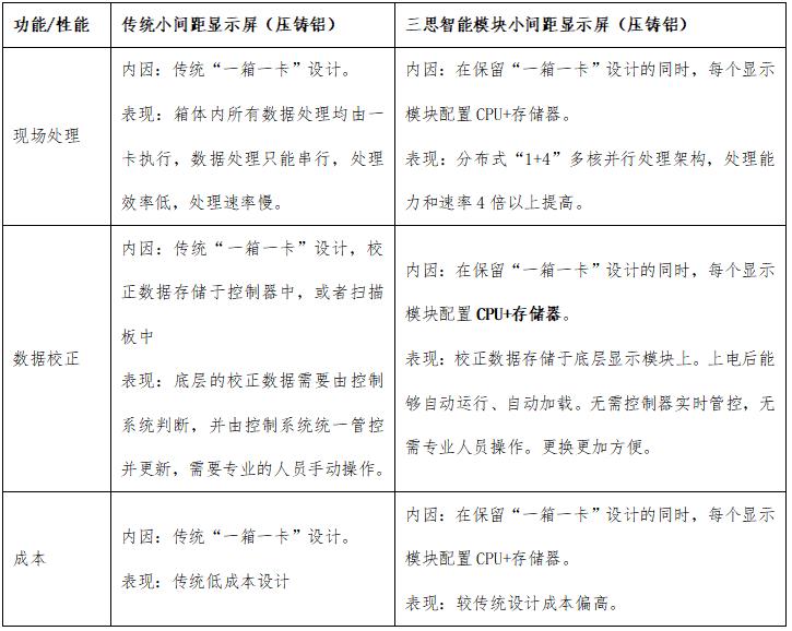 通過下表,我們可以清晰直觀地了解到采用三思智能多核處理架構的箱體在設計上的優越性。