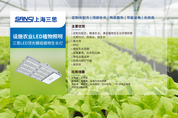 三思針對溫室大棚、植物工廠、室內微景觀和家居植物等領域設計了7W~600W不同規格、頂部和株間補光、全光譜和紅藍光譜等不同品類的植物補光燈,滿足不同植物種植場景的多層次、差異化需求,量身定制植物照明解決方案。