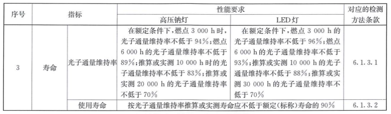 光子通量維持率:在規(guī)定條件下,在特定時(shí)間植物補(bǔ)光燈所發(fā)出的光子通量與初始光子通量的比值,用百分比表示。在特定條件下,高壓鈉燈實(shí)測20000h的光子通量維持率不低于70%,LED燈實(shí)測30000h的光子通量維持率不低于70%。