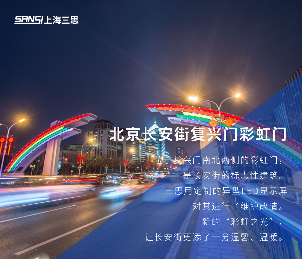 上海三思作為其建筑泛光工程的承建商,采用自身強大顯示技術研制的戶外泛光產品及系統,完成了1922㎡的外觀塑造,讓這座商業翹楚煥發出不一樣的生機。