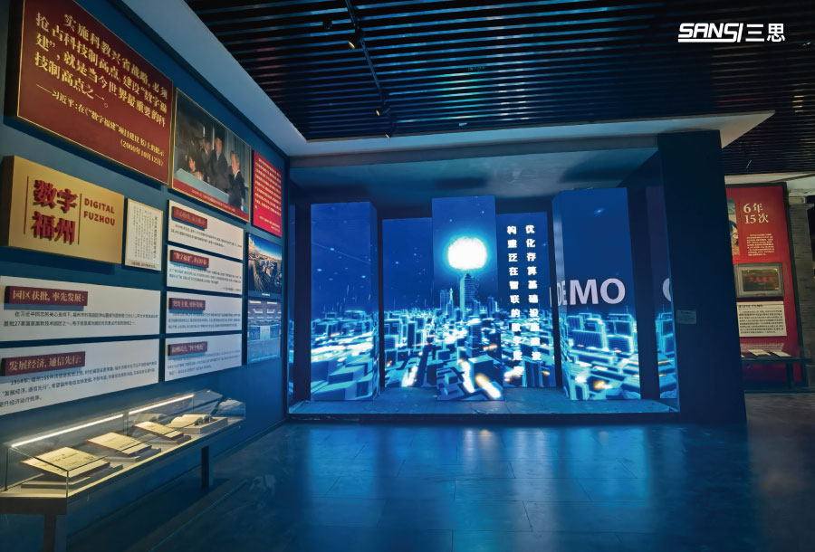 除元宇宙空間外,三思還為展館內多個區域提供了高精LED顯示及系統,進行圖文并茂的數字化展示,講好福州故事。