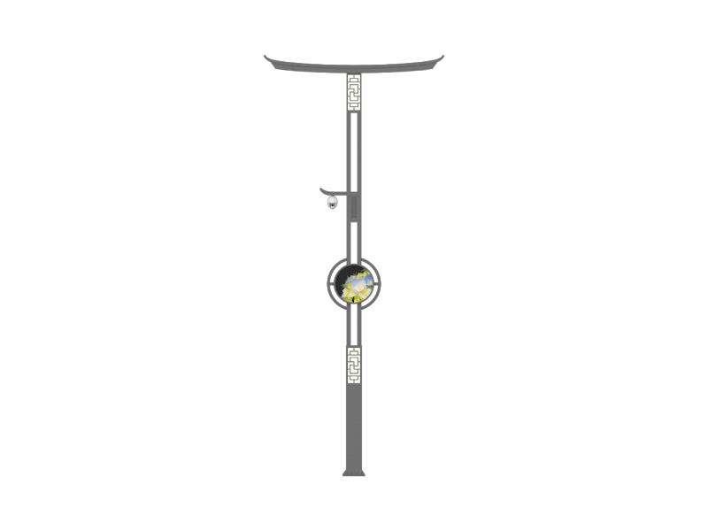 智慧燈桿造型設(shè)計靈感來源于門窗設(shè)計,象征著琴瑟和諧的家庭觀,人心和善的道德觀。燈臂造型靈感源自君子竹,竹,如君子,高風(fēng)亮節(jié)。通過簡約干練的線條,光滑圓潤的曲面,呈現(xiàn)“天人合一的宇宙觀”。