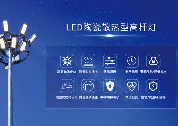 隨著照明技術不斷的發展與進步,對于“空中照明”——超15米高桿燈產品的要求也越來越高。高桿燈可以滿足城市廣場、車站、港口碼頭、貨場、機場、體育場等場所的照明應用,作為“空中照明”核心應用產品,其對于夜間照明安全保障有著非常重要的作用。