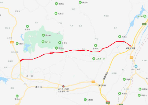 351國道浦江鄭家塢至聯盟段公路工程全長約22.414公里,貫穿浦江東西,途徑鄭家塢、白馬、鄭宅、巖頭、仙華、浦陽六個鄉鎮(街道),總投資約16.1億元,建設工期36個月。