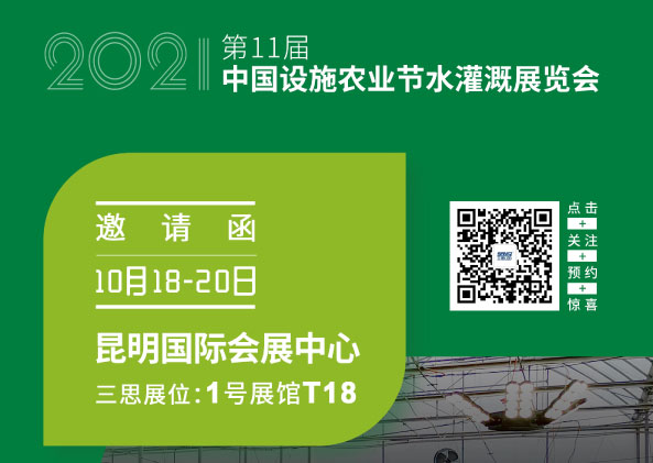 021第11屆中國設施農業水灌溉展覽會,三思邀請您前來參觀-昆明國際會展中心,1號展館T18